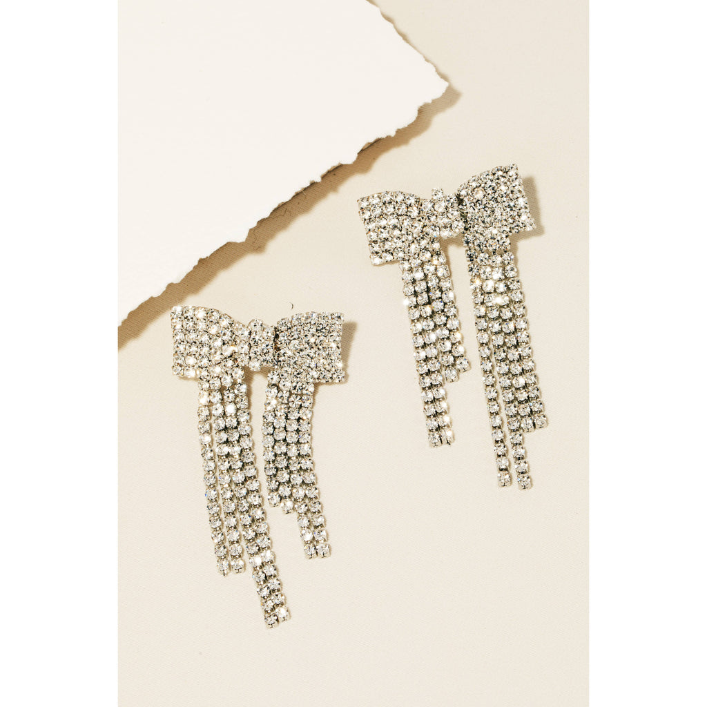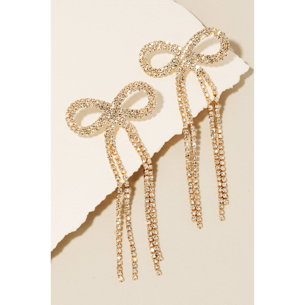 Rhinestone Ribbon Bow Tail Drop Earrings
