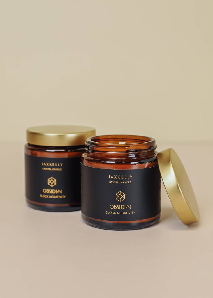 4oz Amber Crystal Candles - Obsidian - Block Negativity