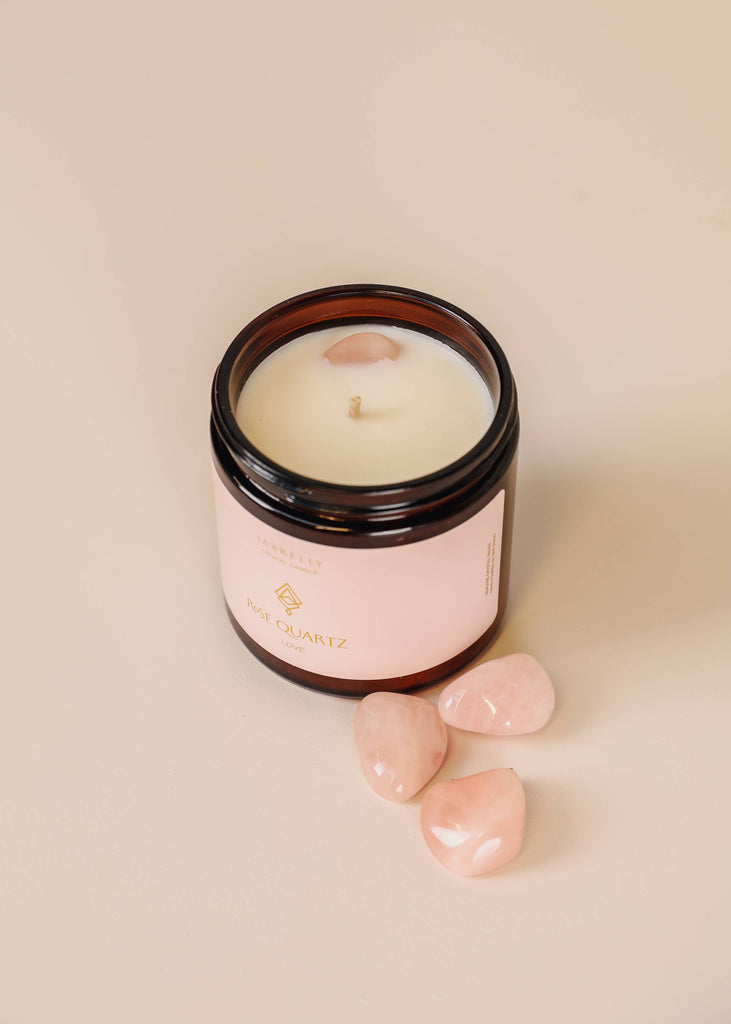 4oz Amber Crystal Candles - Rose Quartz - Love