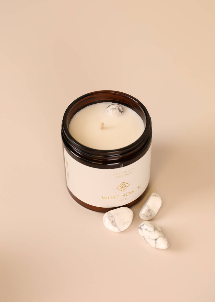 4oz Amber Crystal Candles - White Howlite - Mindfulness