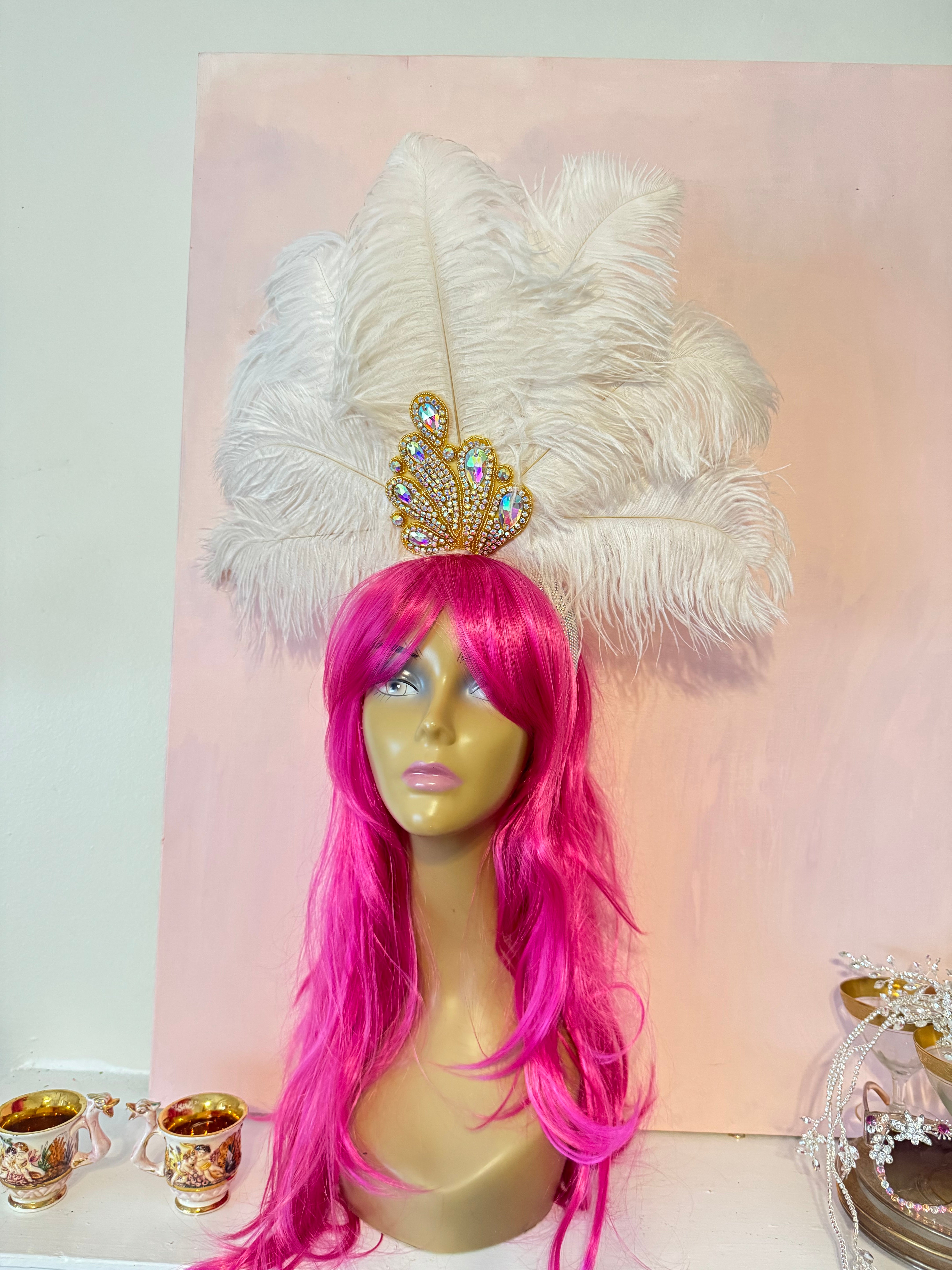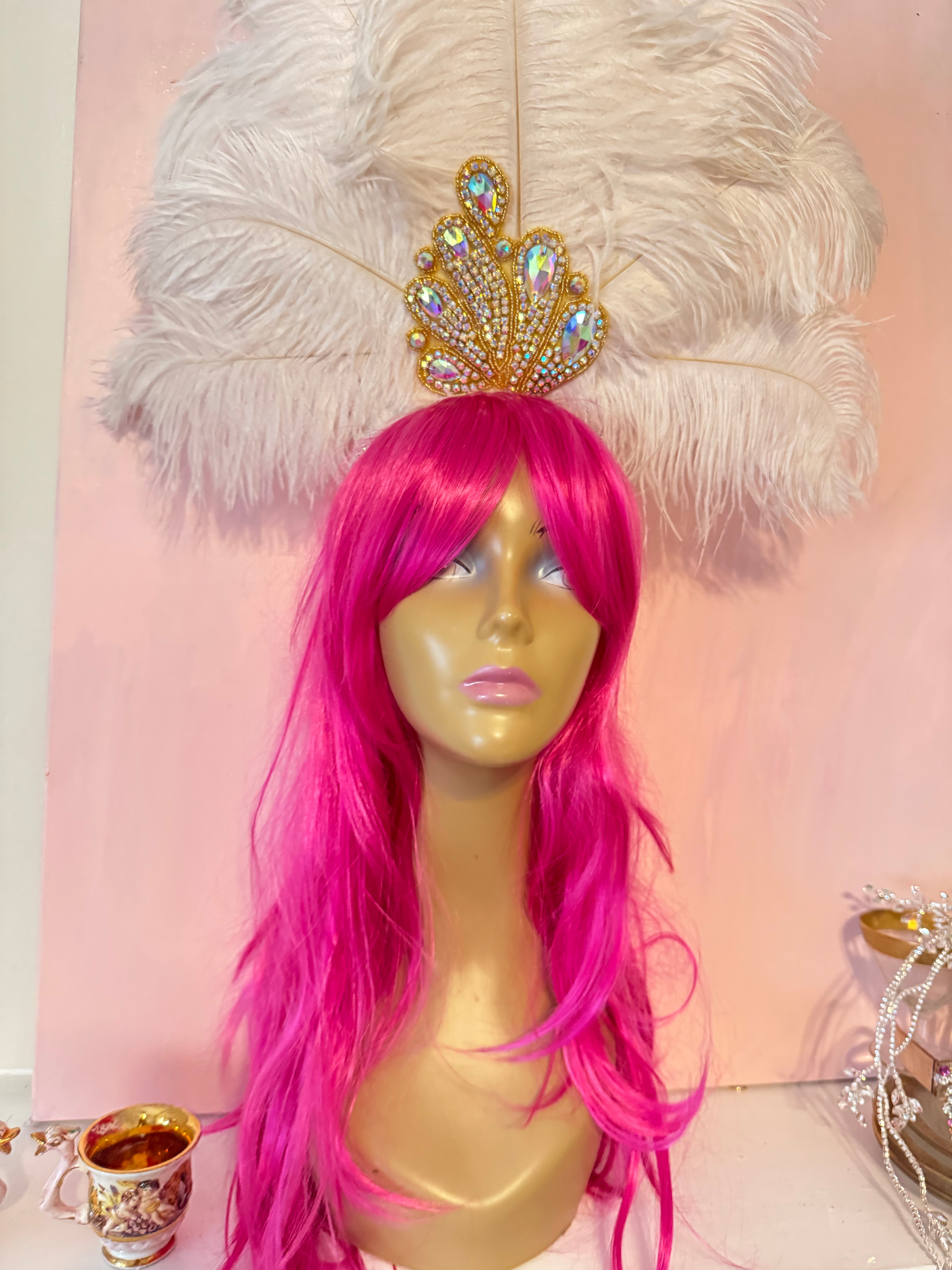 showgirl white Feather Beauty -headpiece by Alligator Eyes is backordered and will ship as soon as it is back in stock.