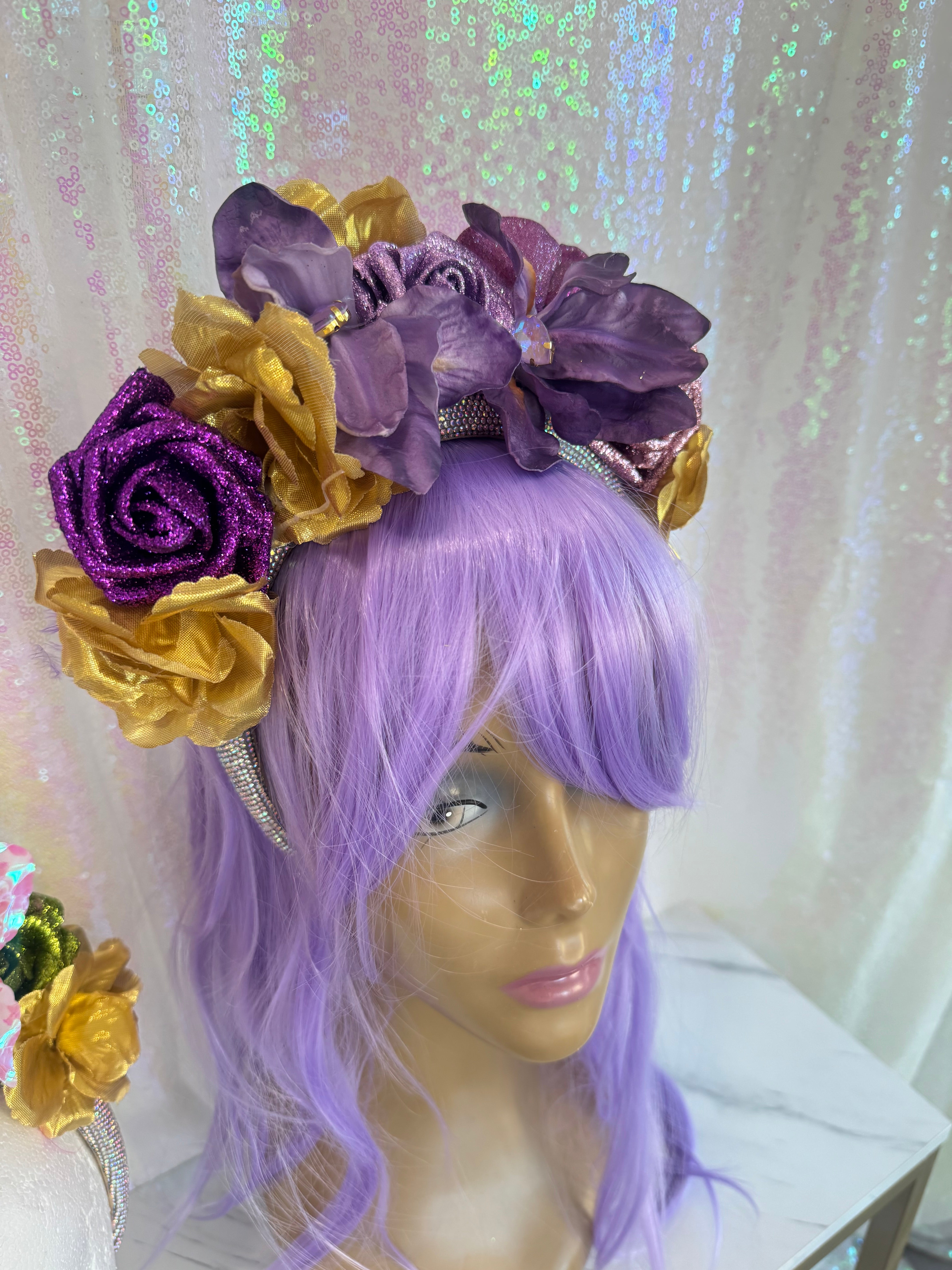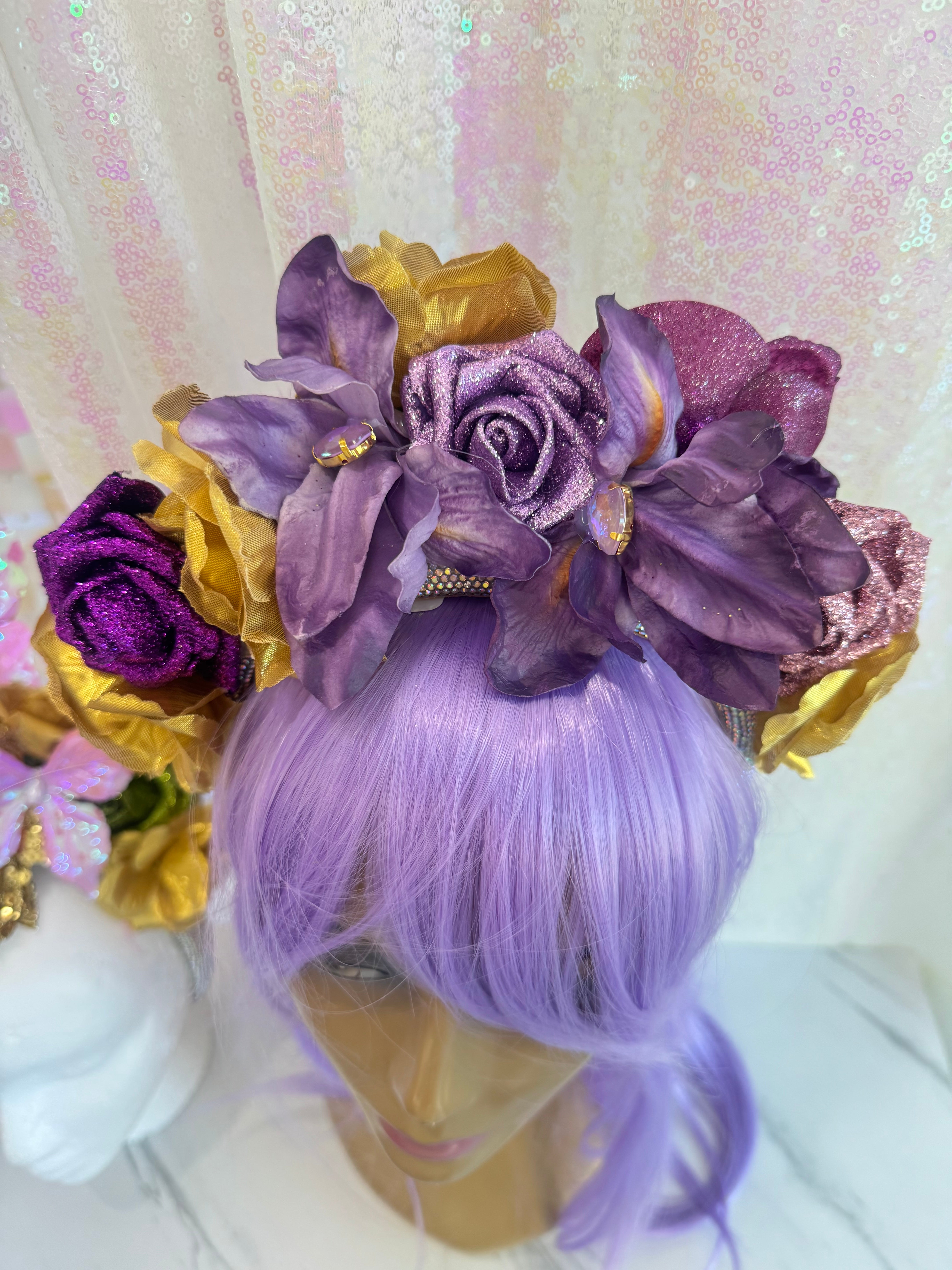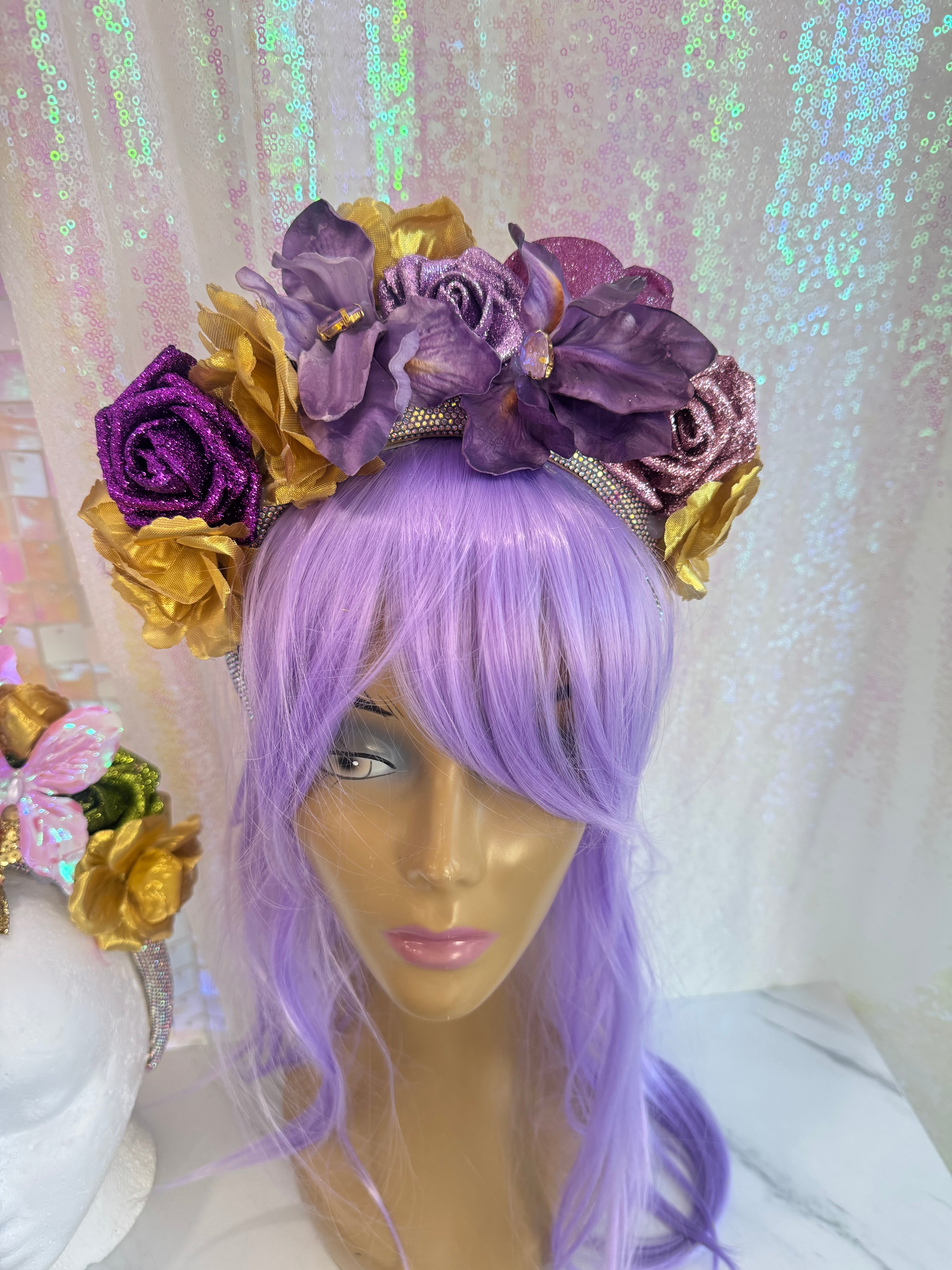 3434 Mardi Bloom handmade headpiece by Alligator Eyes