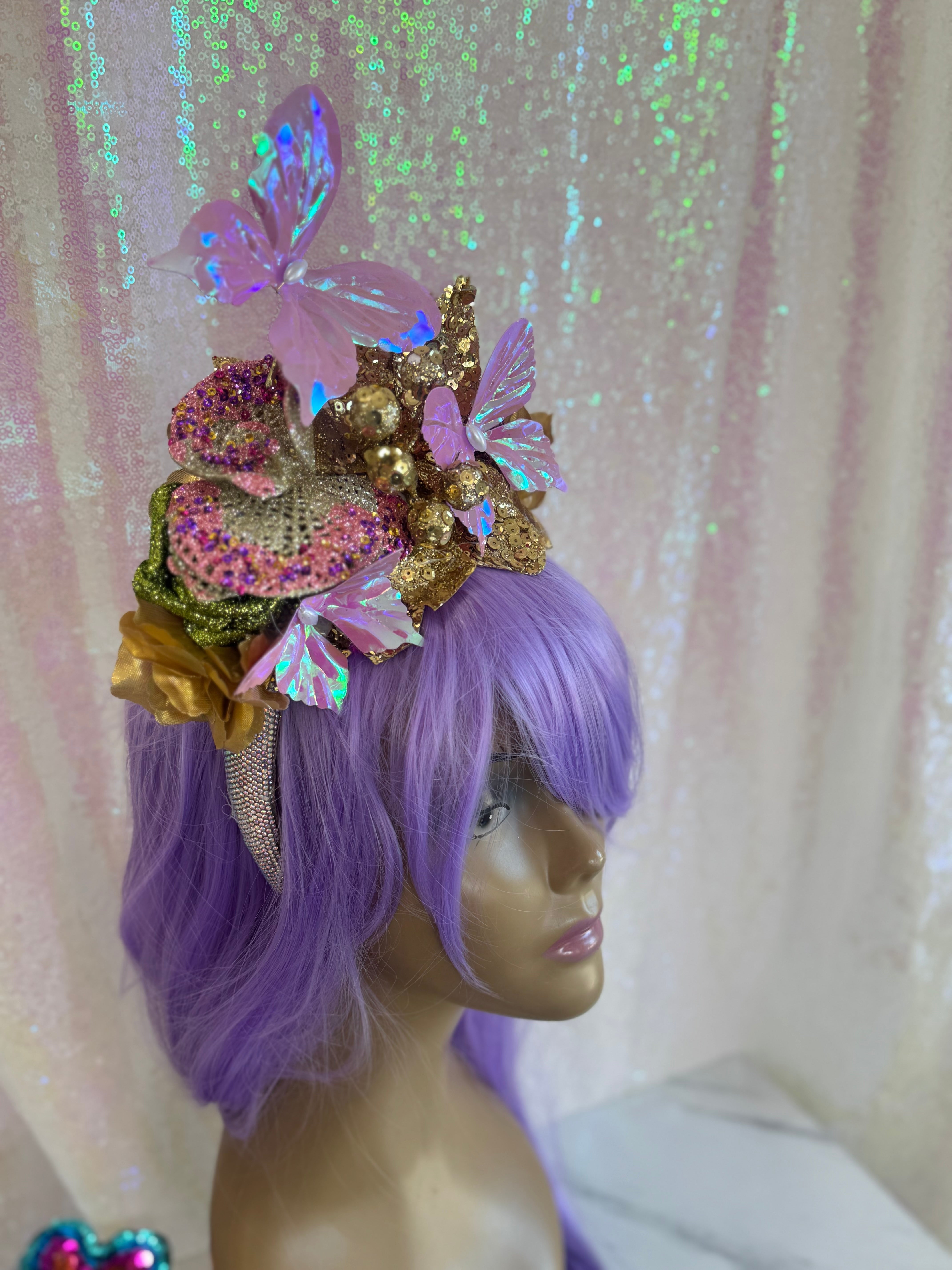 6663 Mardi Bloom handmade headpiece by Alligator Eyes