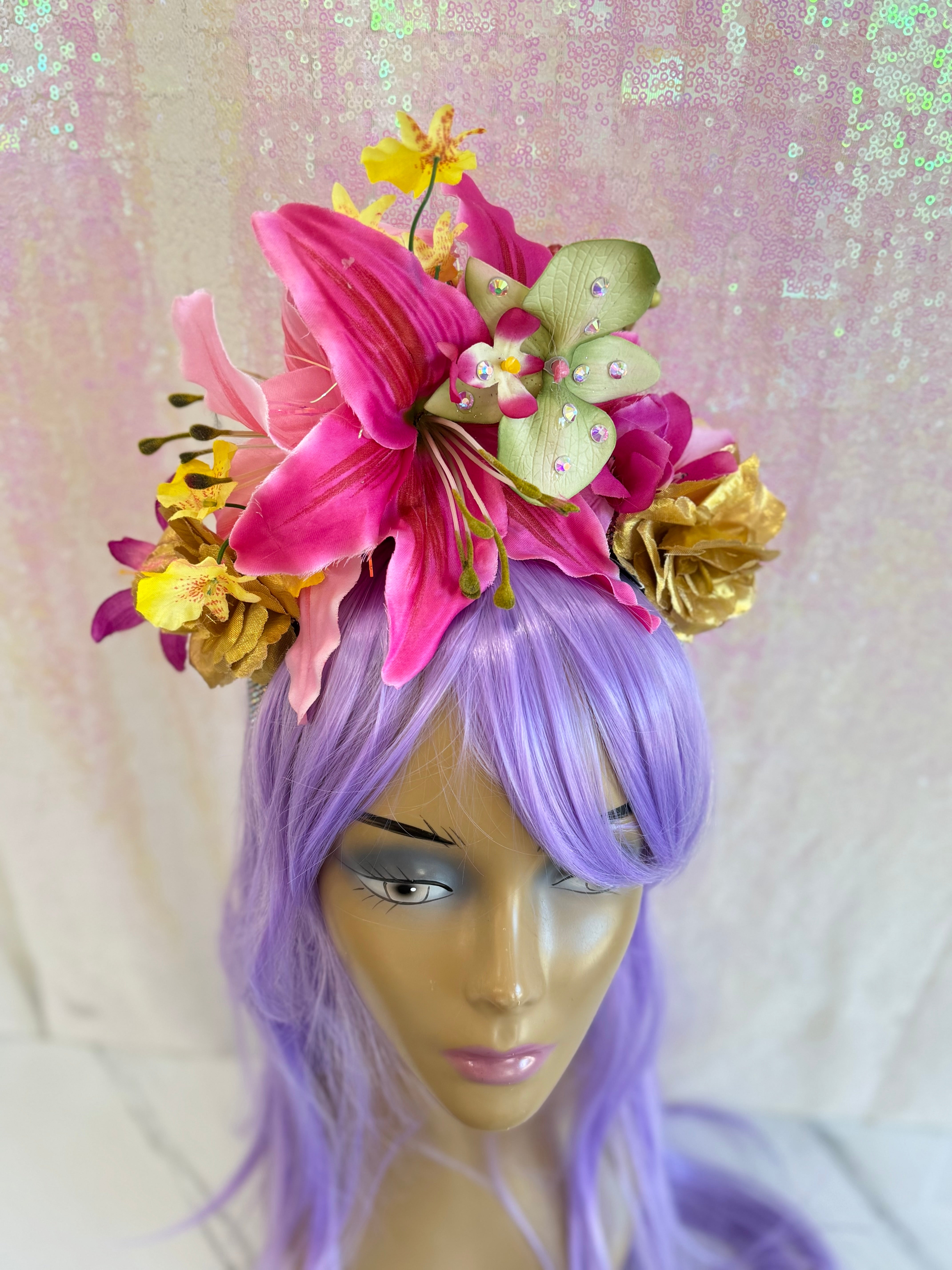 806 Mardi Blooms handmade headpiece by Alligator Eyes (
