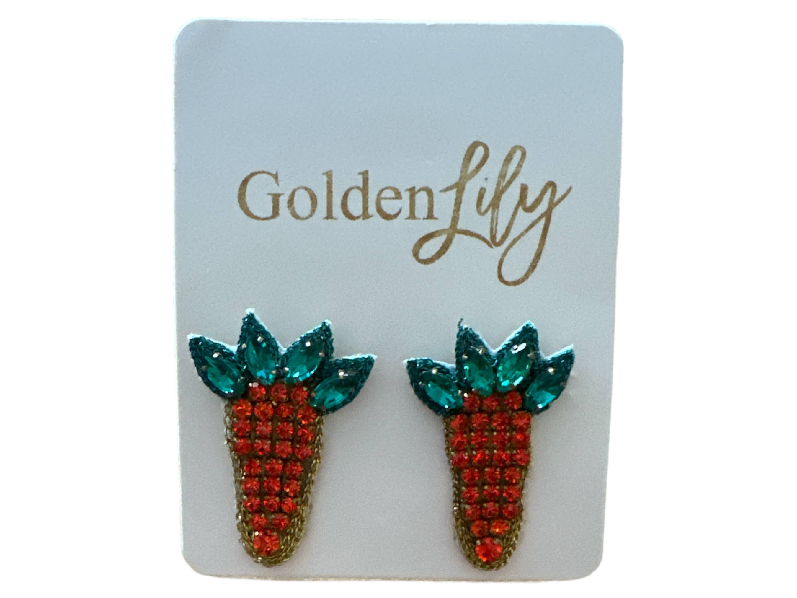 The cutest little rhinestone embellished carrot stud earrings! The perfect Easter ear candy!