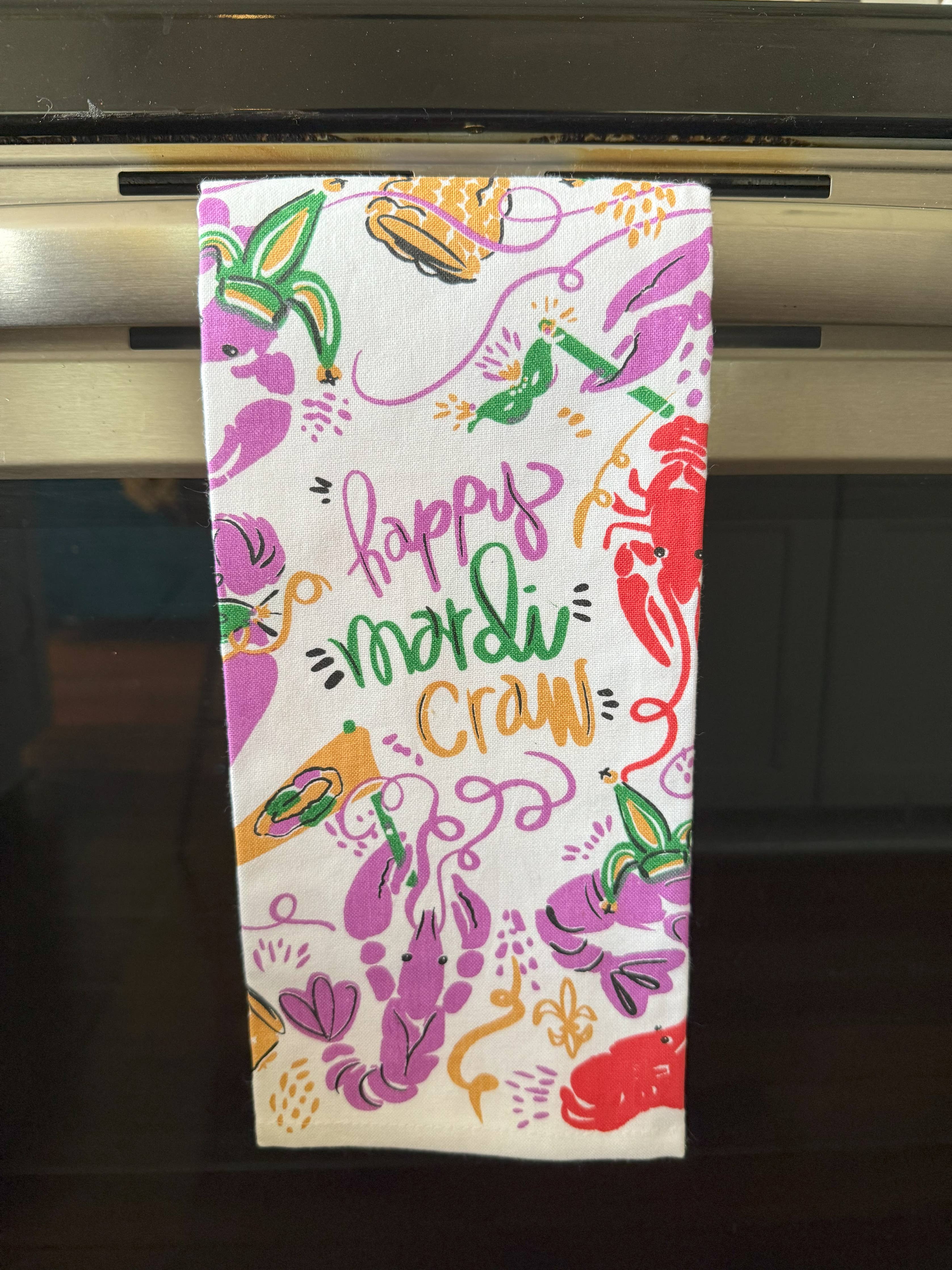 This playful kitchen towel celebrates the fun Louisiana tradition of Mardi Craw — when Mardi Gras and crawfish season come together for double the festivity! Bursting with vibrant colors and local charm, it’s sure to brighten up your kitchen during the season.