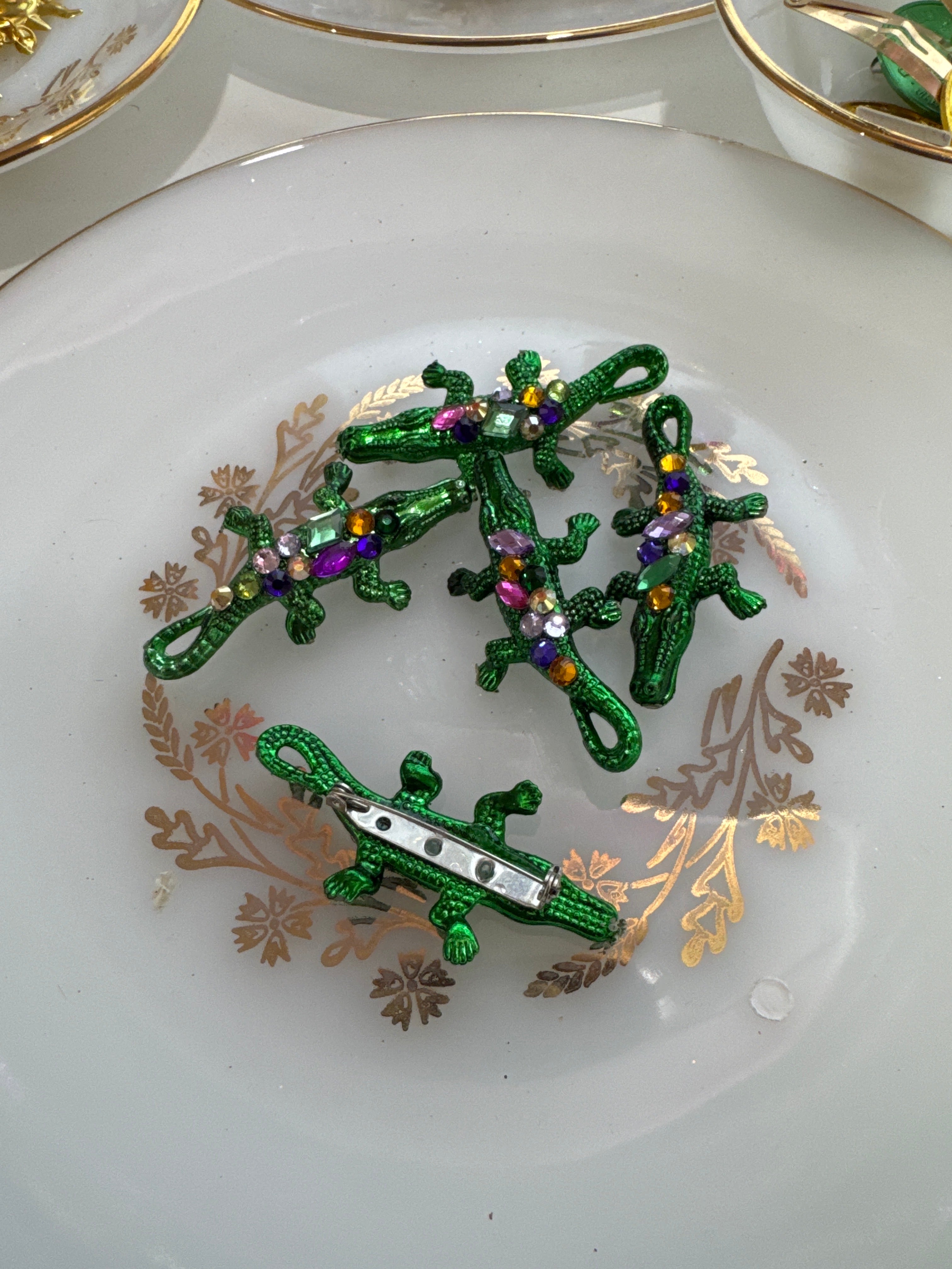 Version 2 Gator GLAM pin handmade by Alligator Eyes is backordered and will ship as soon as it is back in stock.