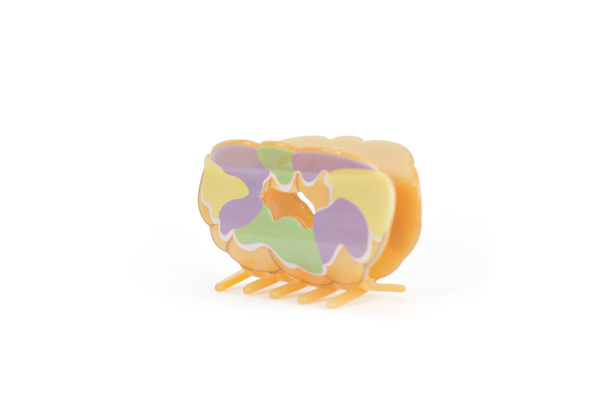 Claw clip made from cellulose acetate. Approximately 3 inches tall. Designed by me.