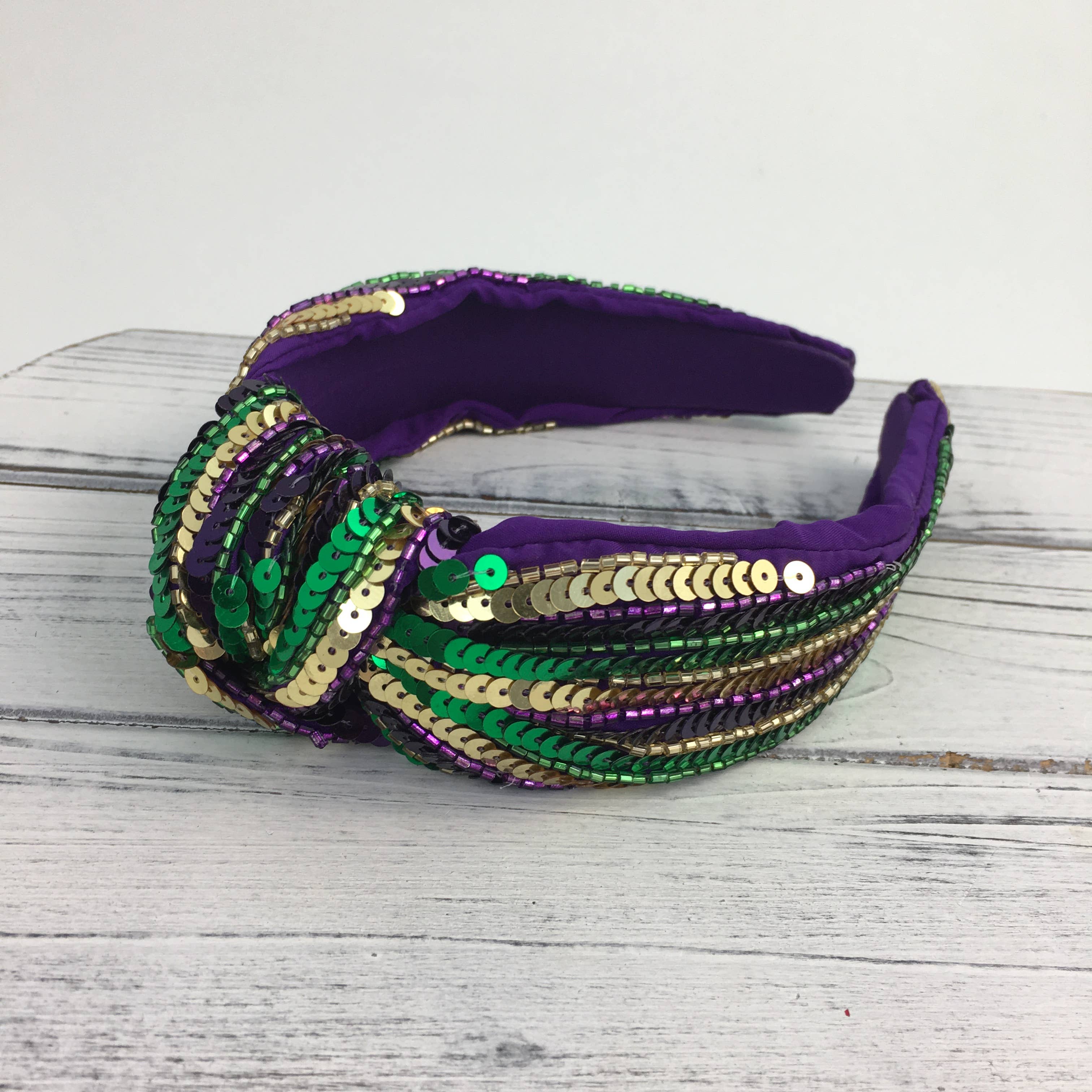 This headband is part of our Mardi Gras collection. It is made of sequin and tied into a cute bow to fit the Mardi Gras vibe!
