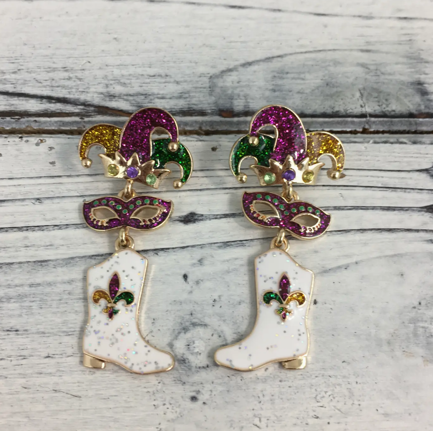 These are our gorgeous Mardi Gras themed enamel dangle earrings! These are so fun and festive and perfect for the Mardi Gras season! These measure approximately 2 inches long Find more in our Mardi Gras jewelry collection!