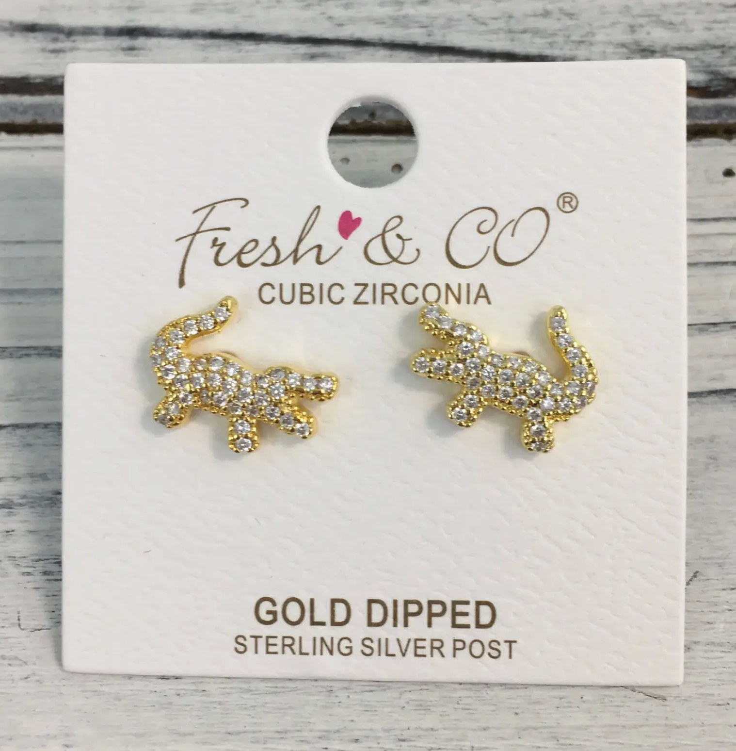 These are our adorable rhinestone alligator earrings! These are so fun and unique and perfect for Louisiana pride! These measure approximately 2 inches long. We have a matching necklace, and more in our NOLA/Louisiana collection!