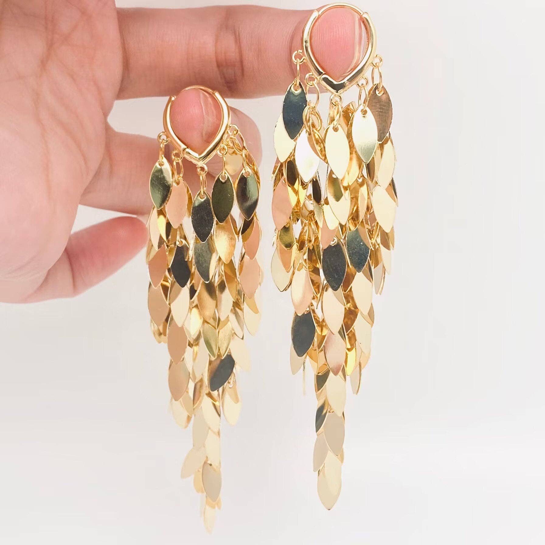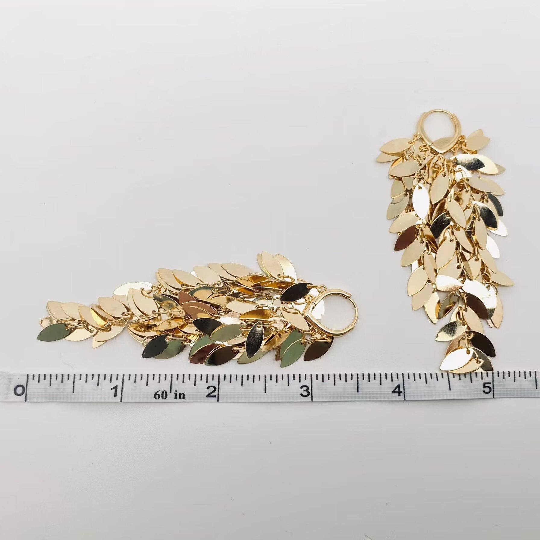 18K Gold Plated Wheat Ear Sequin Tassel Huggie Earrings