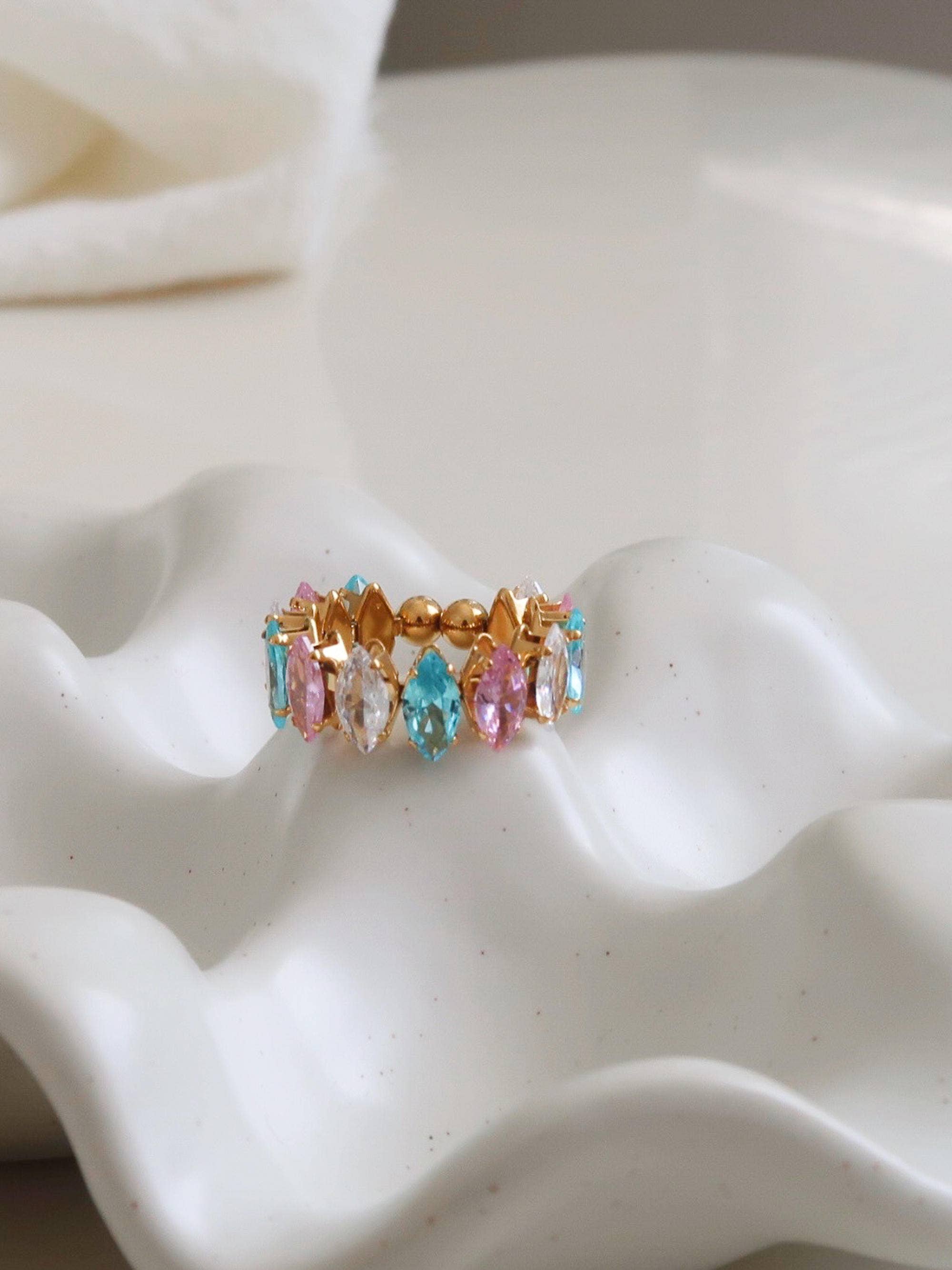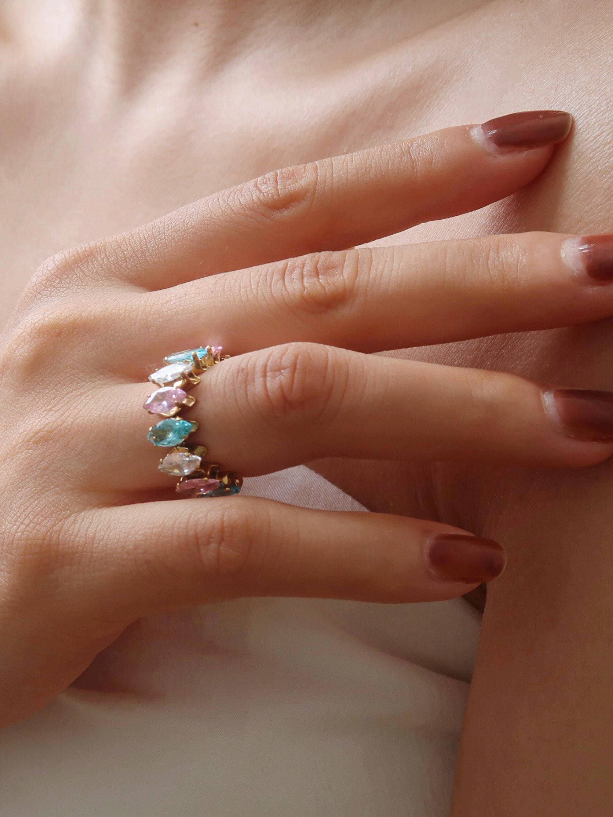 Briony 18K Gold Non-Tarnish Multi-Gemstone Eternity Ring