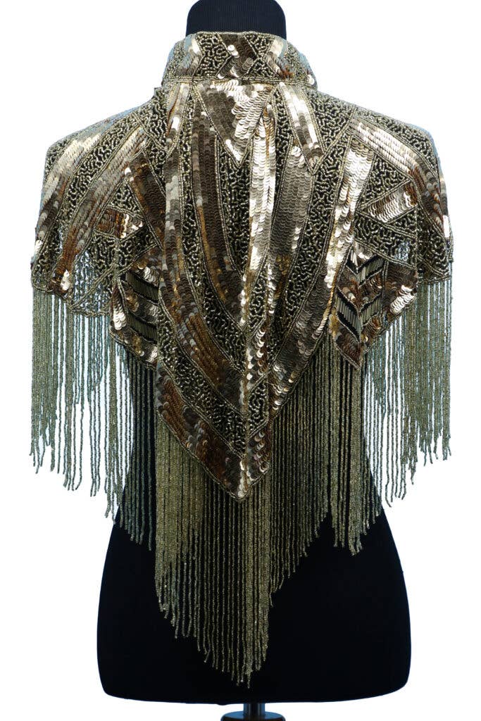 Beaded Shawl Gold- gold fringes with collar