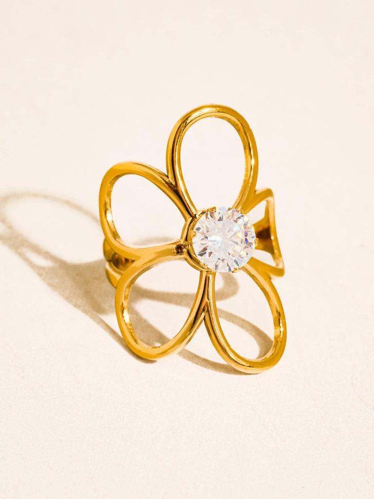 18K Gold Non-Tarnish CZ Flower Statement Ring