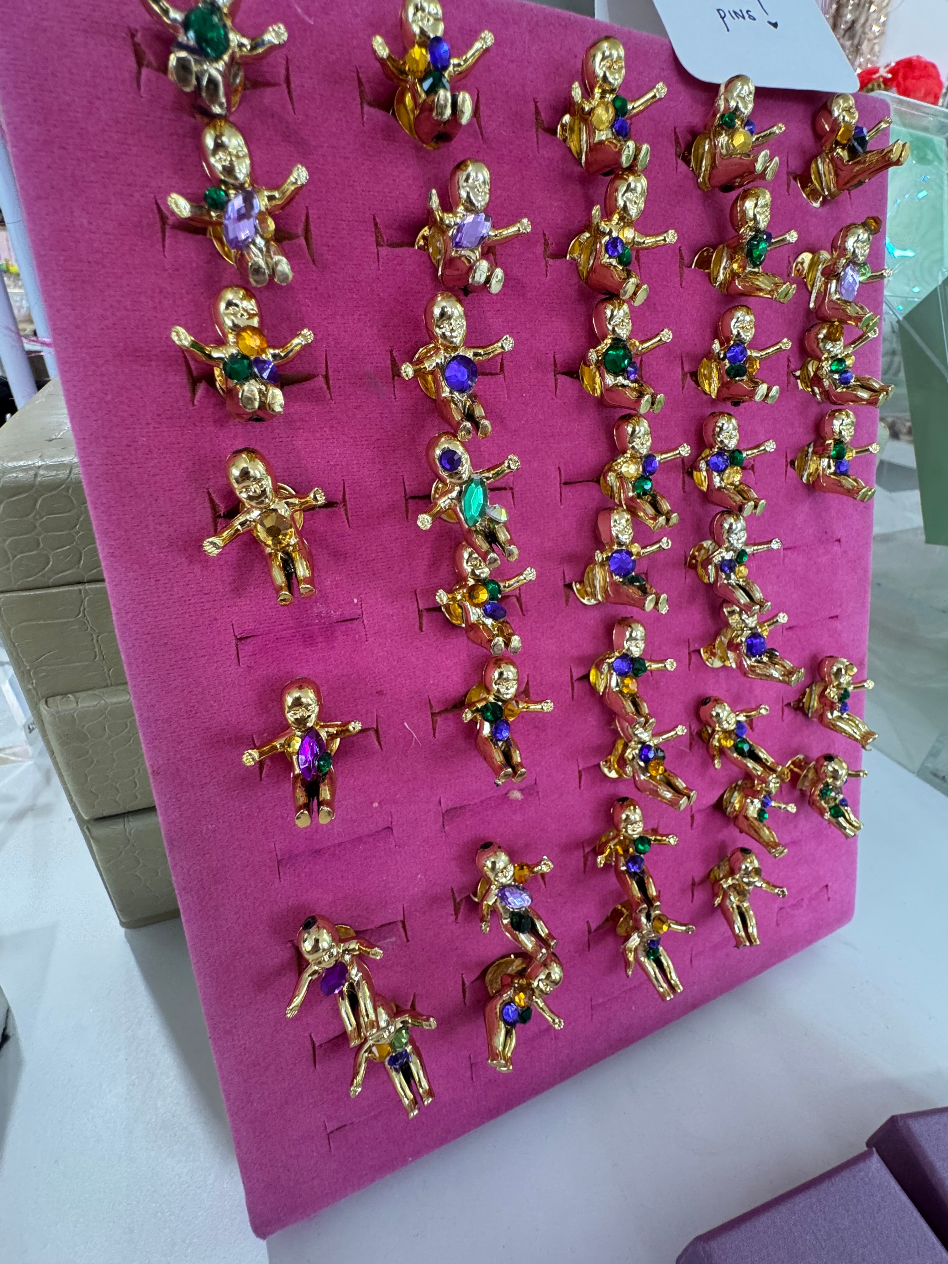 King cake baby pin handmade by Alligator Eyes