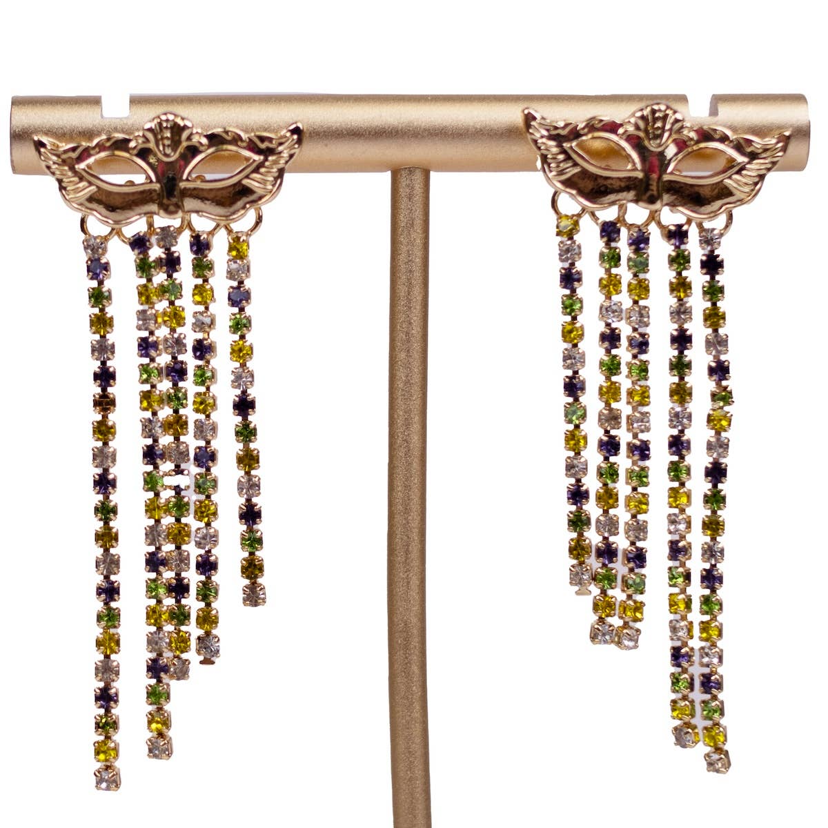 Krewe Ball Mask Earrings Purple/Green/Gold 2"