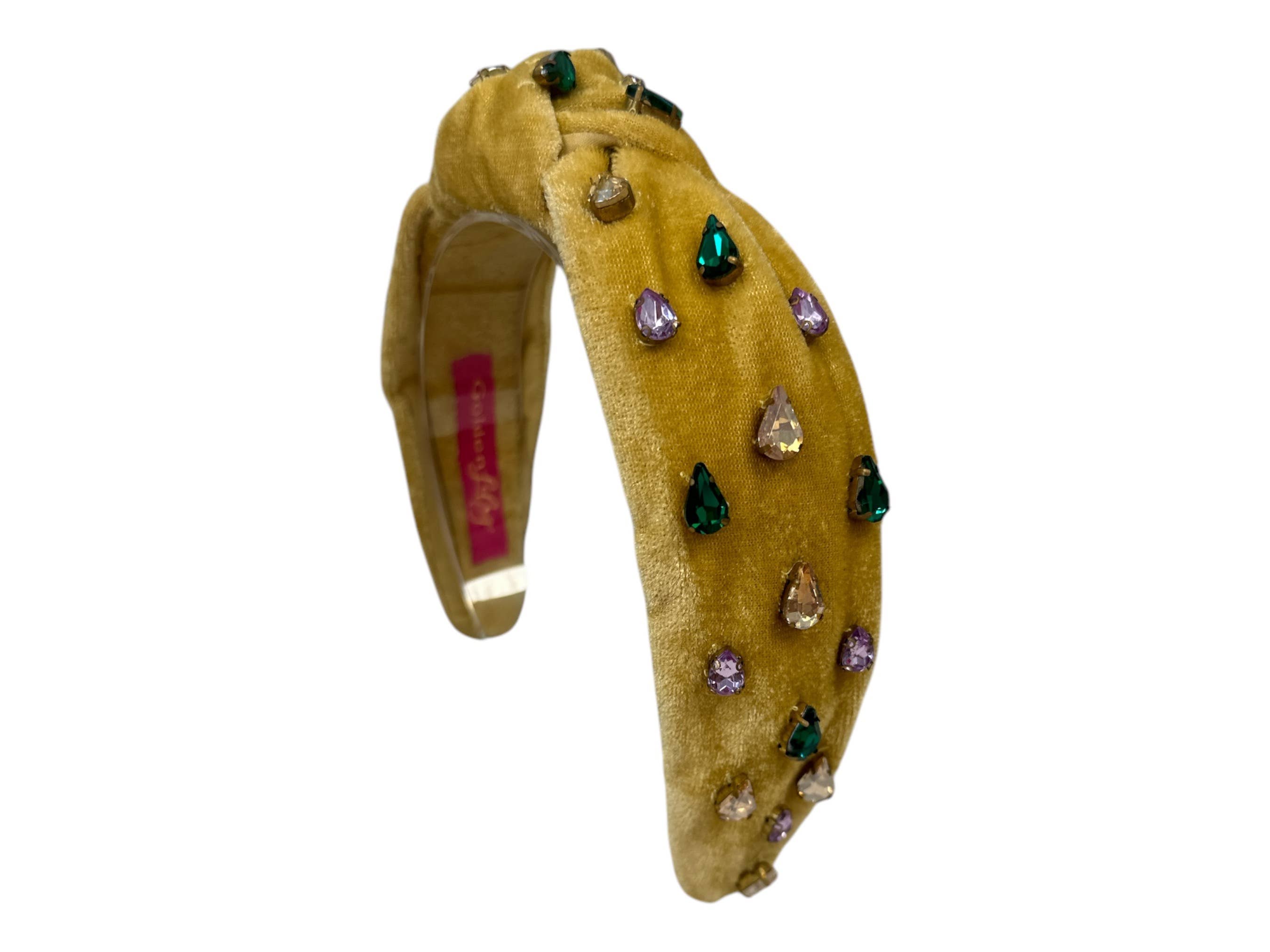 Mardi Gras Headband - Gold Velvet Rhinestone