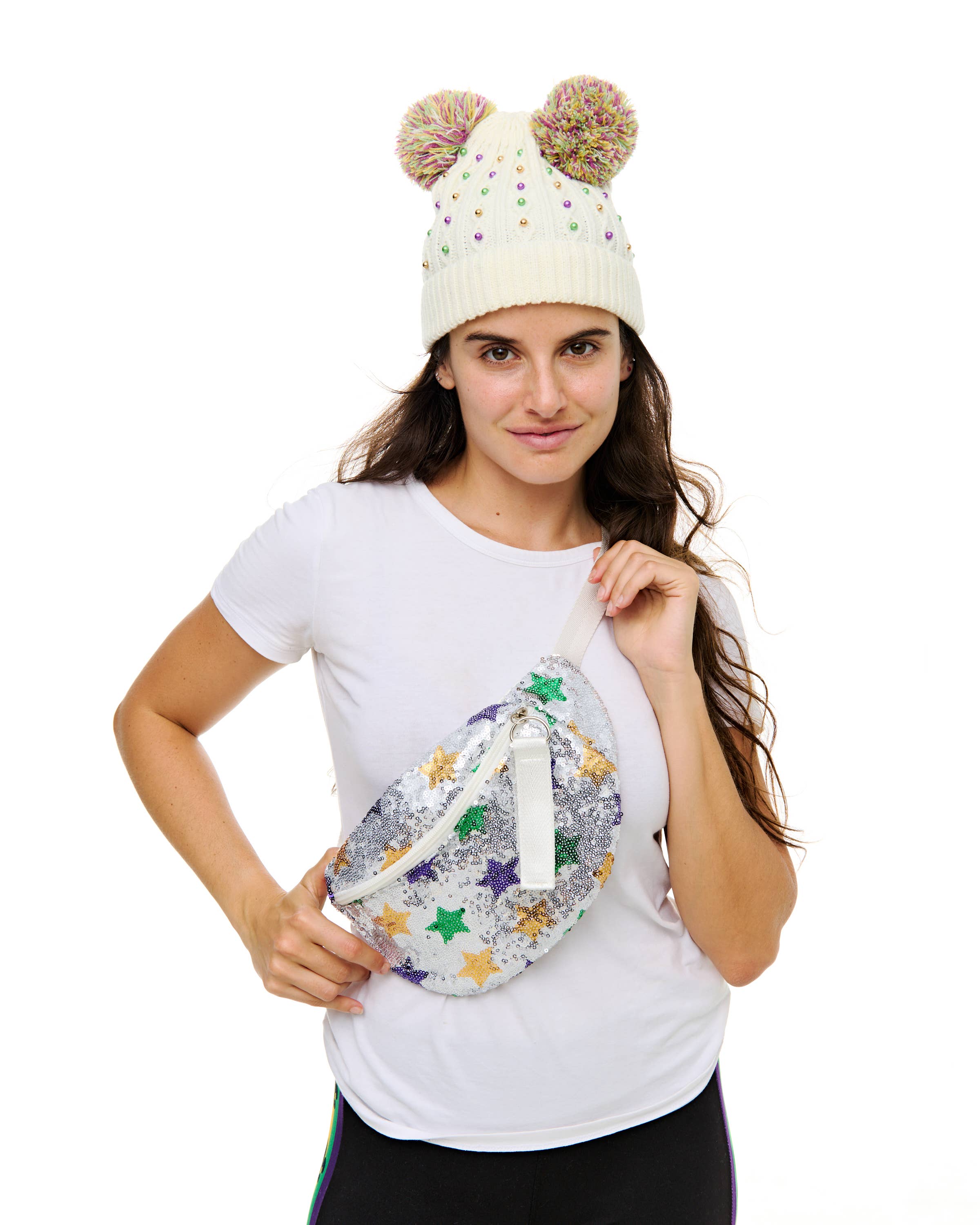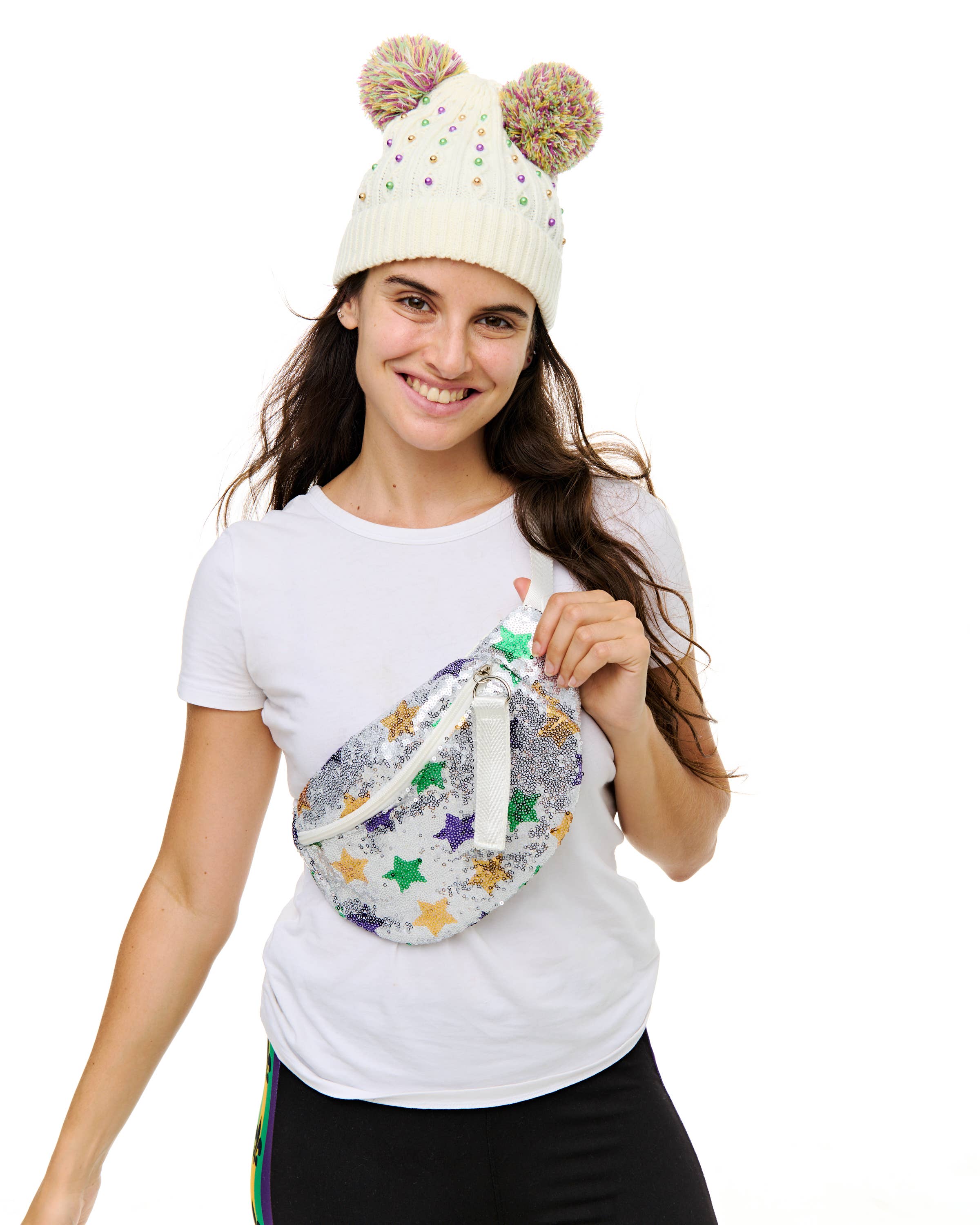 This is our adorable Mardi Gras sequin star Fanny pack! This item is so stylish, unique, and most importantly, PRACTICAL! This item can be worn around the waist, or adjusted to crossbody. Find more in our Mardi Gras accessories collection!