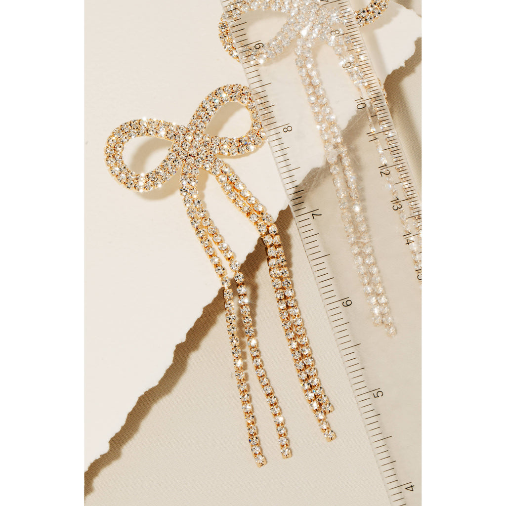 Rhinestone Ribbon Bow Tail Drop Earrings