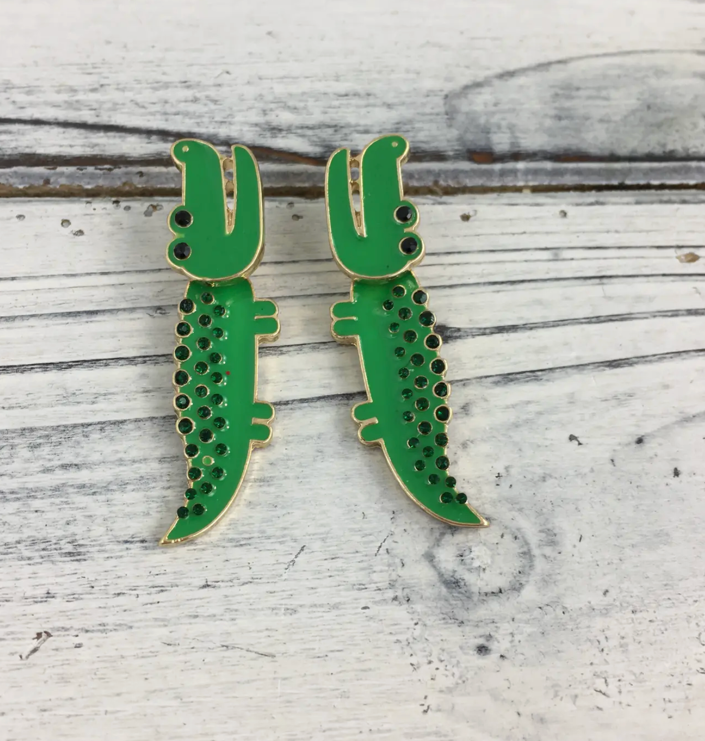 These are our adorable silly alligator dangle earrings! These are so fun and cute and perfect for elevating your shop! Find more in our NOLA/LOUISIANA collection!