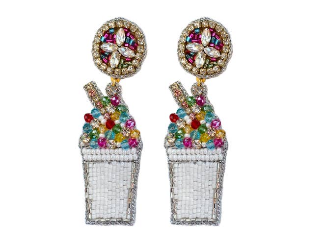 Beat the heat with our precious snowball earrings! Seed bead and rhinestone detail, these earrings will sparkle all Summer Long!